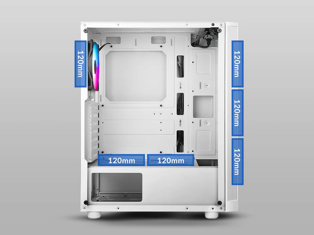 1 x 120 mm LFO-3612D ARGB fan in the rear